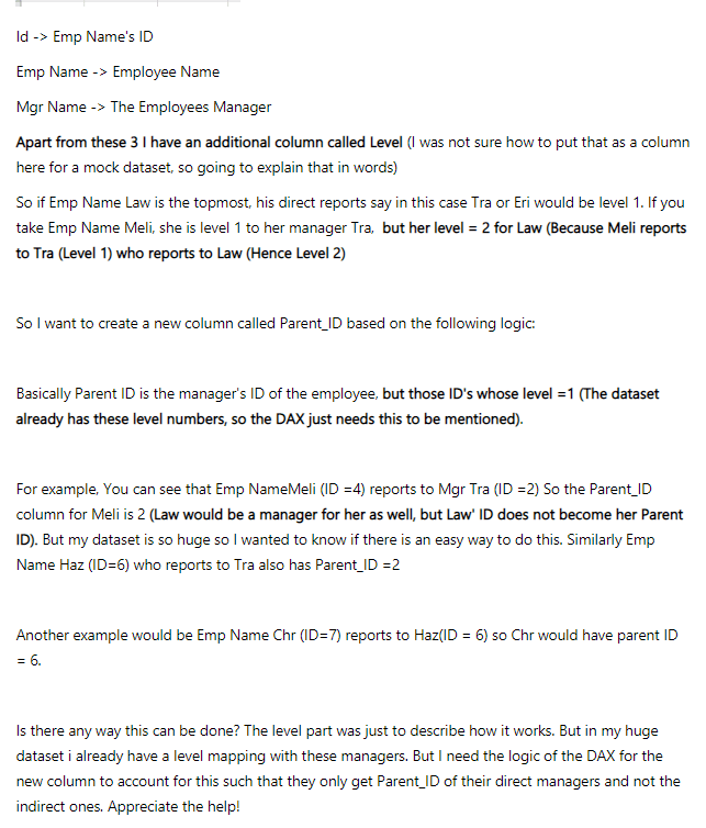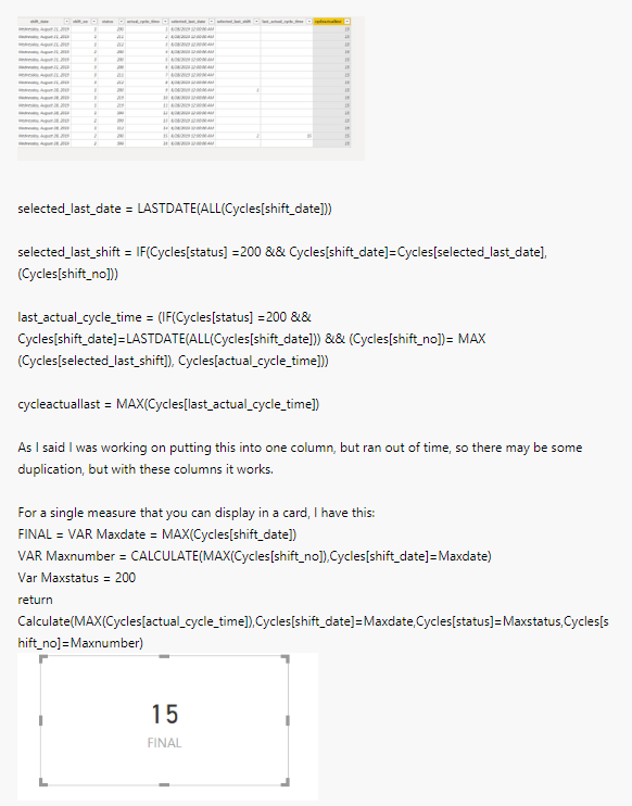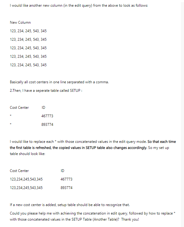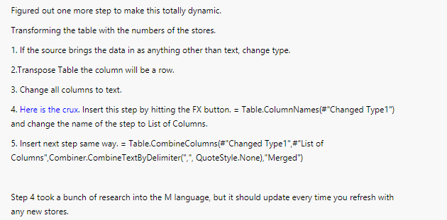 These examples are really just for scanning and perhaps seeing the level of complexity that I am working at. Almost every issue that I have answered has been unique. They have involved knowing data formation, Power Query, the M language, Dax and Power BI visualizations and others.
